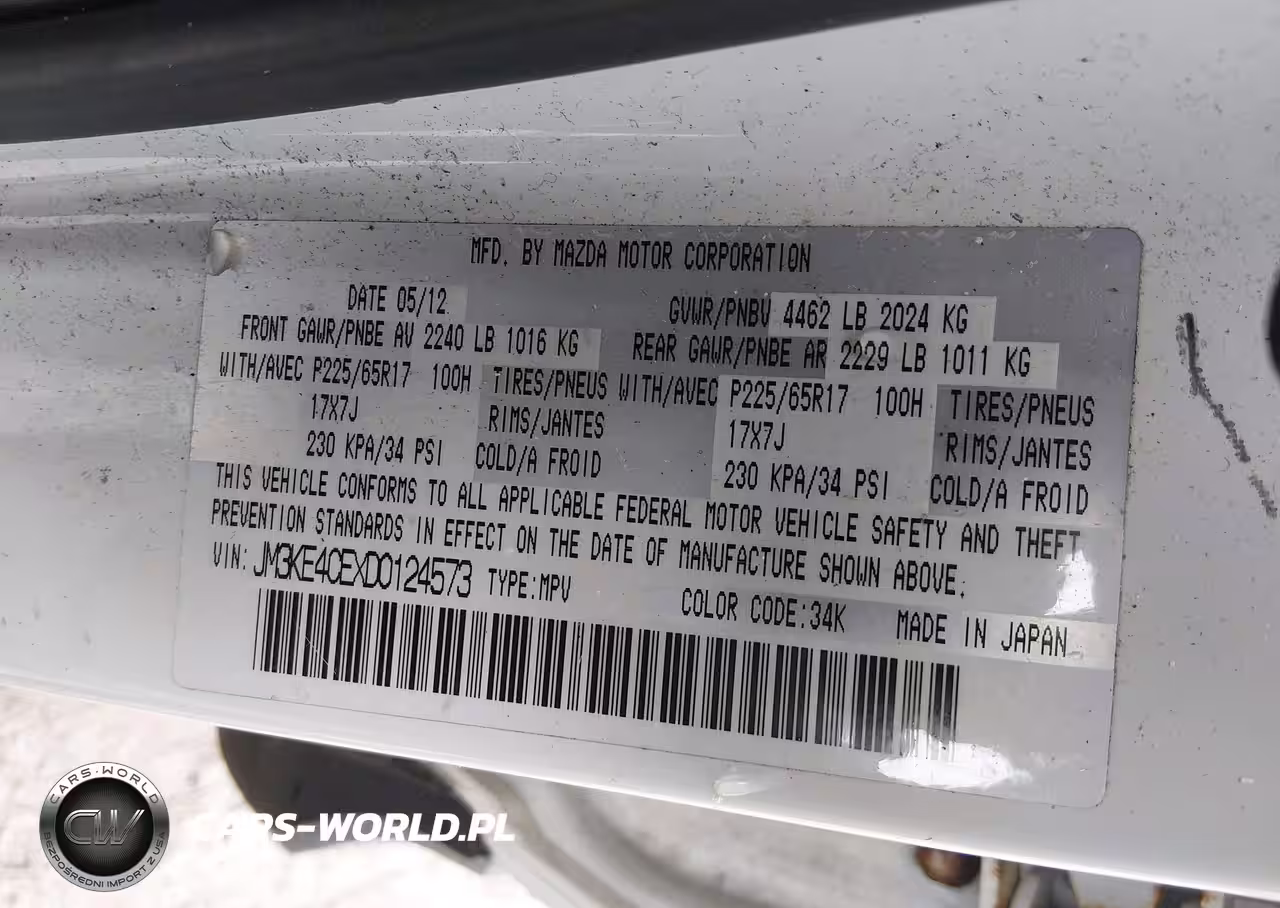 IAAI Nr: I-44524563 VIN: JM3KE4CEXD0124573 Port: Elizabeth, NJ