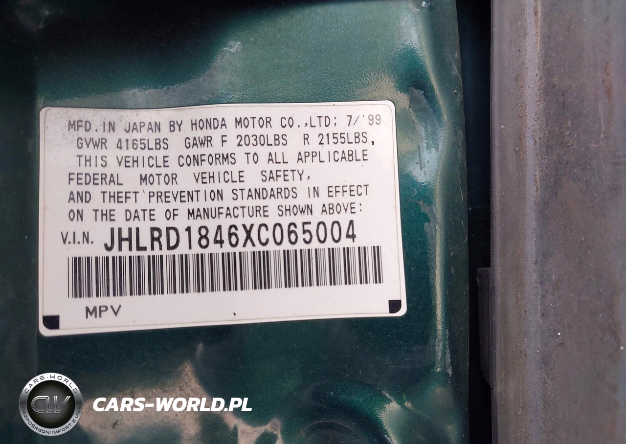 IAAI Nr: I-44525209 VIN: JHLRD1846XC065004 Port: Indianapolis, IN