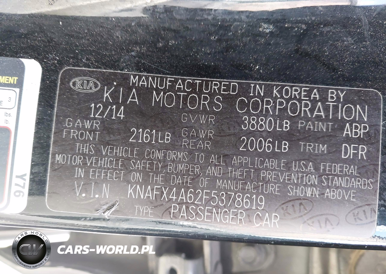 IAAI Nr: I-44525473 VIN: KNAFX4A62F5378619 Port: Houston, TX