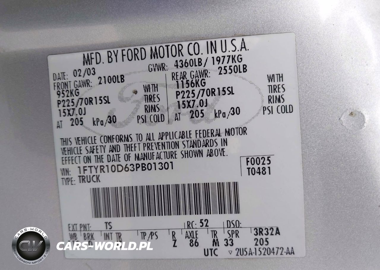 IAAI Nr: I-44525927 VIN: 1FTYR10D63PB01301 Port: Houston, TX