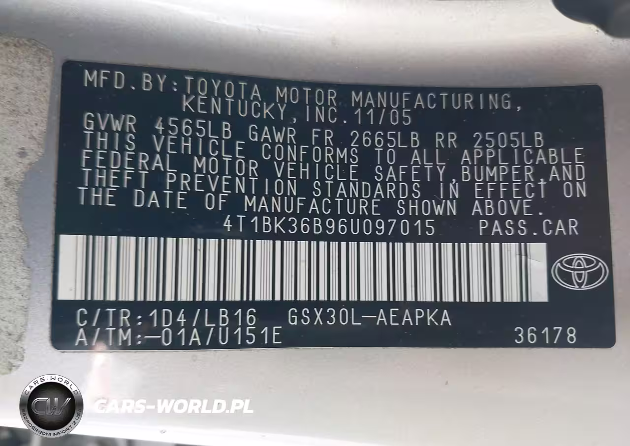 IAAI Nr: I-44526576 VIN: 4T1BK36B96U097015 Port: Los Angeles, CA