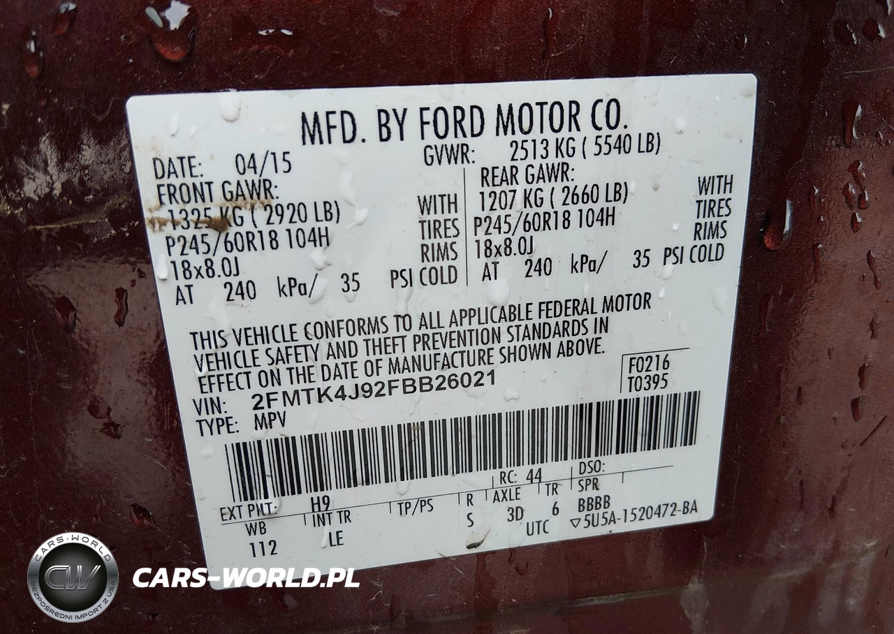 IAAI Nr: I-44526856 VIN: 2FMTK4J92FBB26021 Port: Elizabeth, NJ