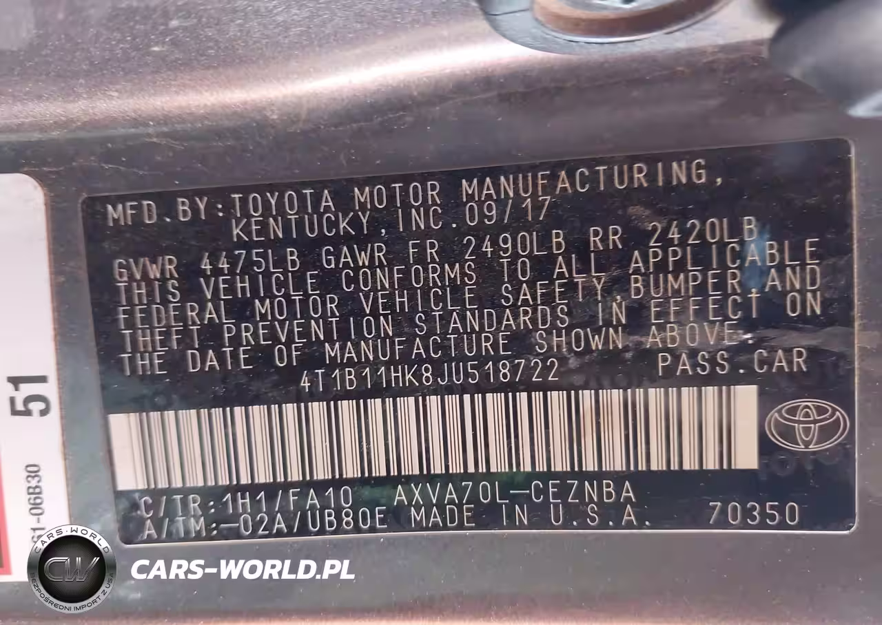 IAAI Nr: I-44528907 VIN: 4T1B11HK8JU518722 Port: Los Angeles, CA