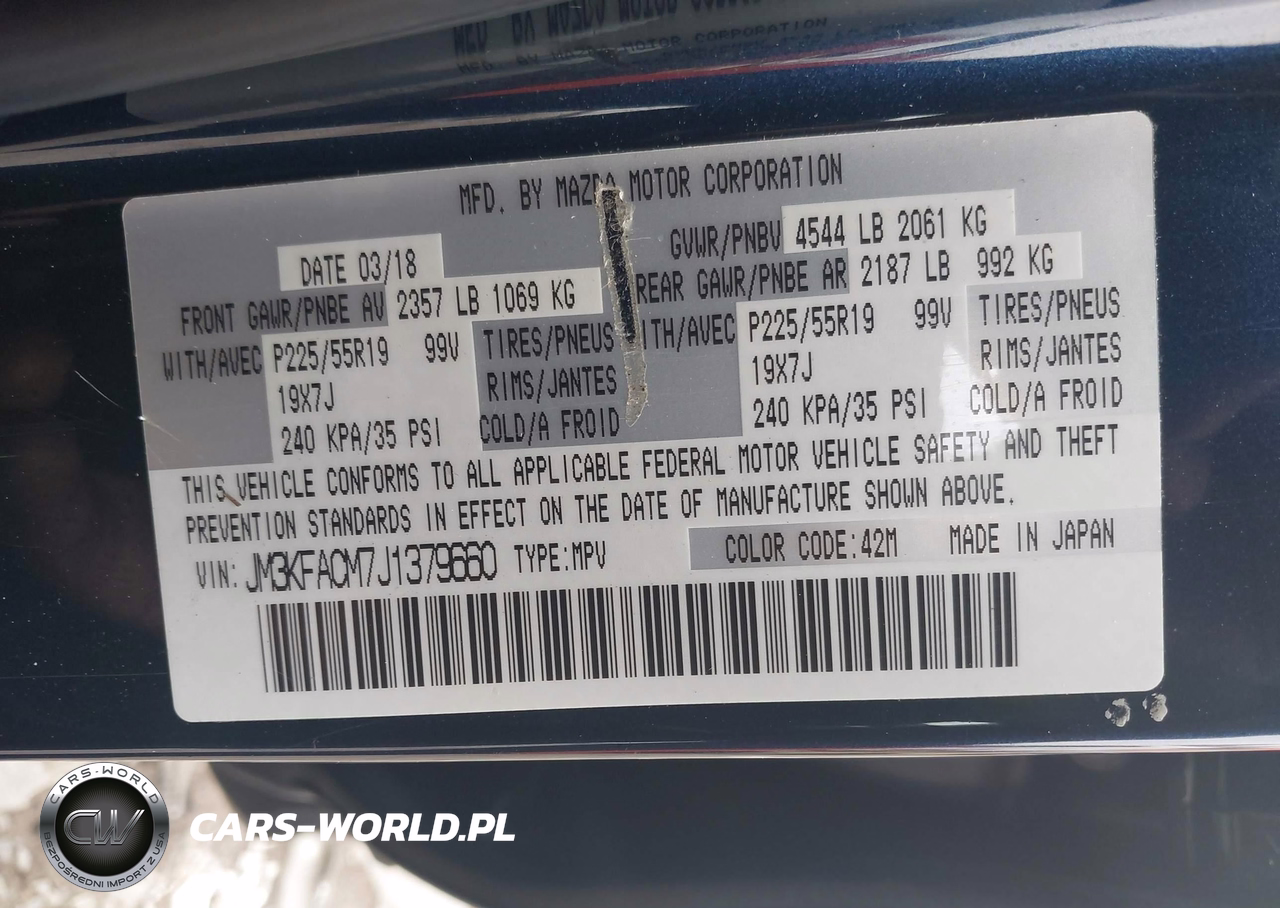 IAAI Nr: I-44529078 VIN: JM3KFACM7J1379660 Port: Savannah, GA
