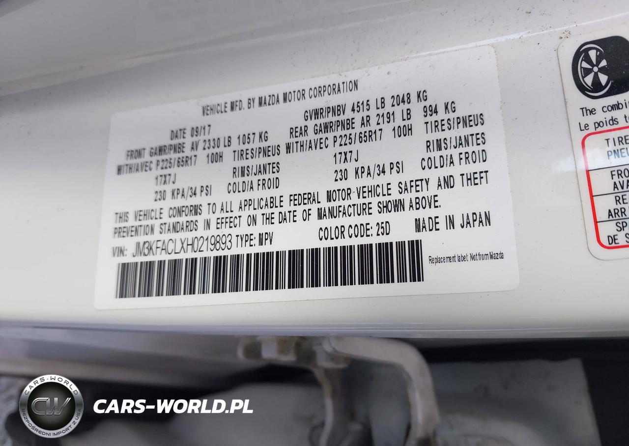 IAAI Nr: I-44529159 VIN: JM3KFACLXH0219893 Port: Savannah, GA