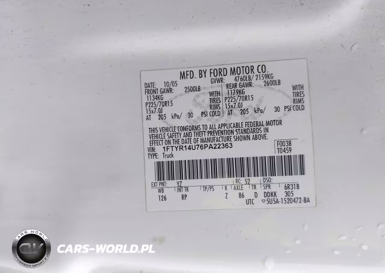 IAAI Nr: I-44529434 VIN: 1FTYR14U76PA22363 Port: Houston, TX