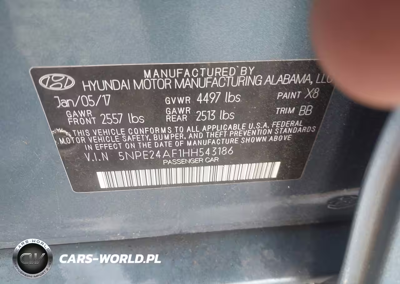 IAAI Nr: I-44530038 VIN: 5NPE24AF1HH543186 Port: Savannah, GA