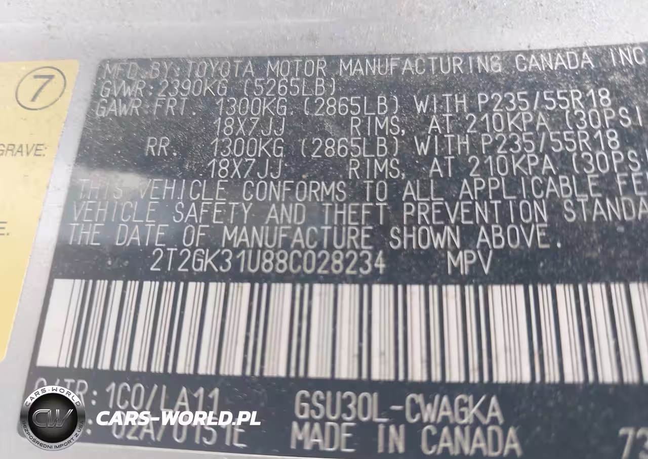 IAAI Nr: I-44530055 VIN: 2T2GK31U88C028234 Port: Savannah, GA