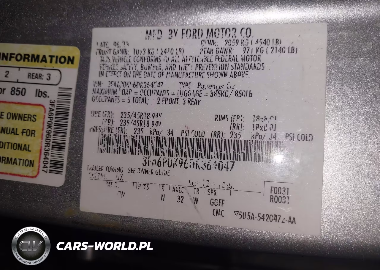 IAAI Nr: I-44530285 VIN: 3FA6P0K96DR364047 Port: Indianapolis, IN