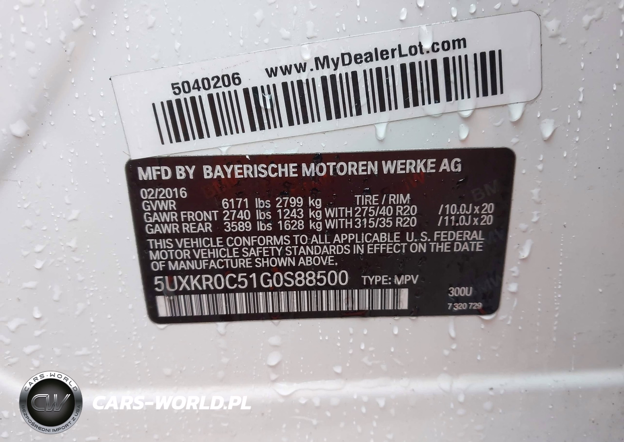 IAAI Nr: I-44530373 VIN: 5UXKR0C51G0S88500 Port: Elizabeth, NJ
