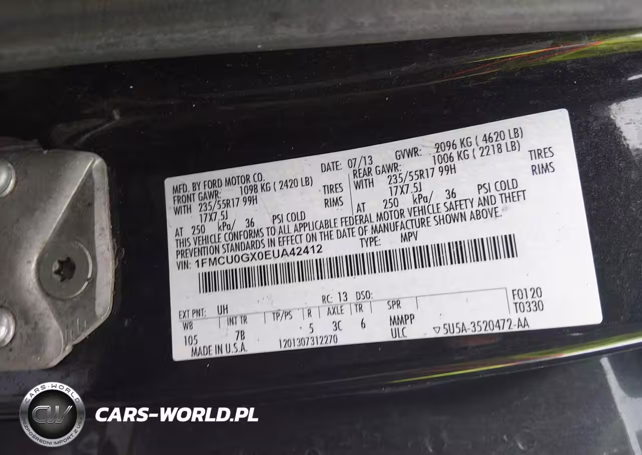 IAAI Nr: I-44531191 VIN: 1FMCU0GX0EUA42412 Port: Elizabeth, NJ