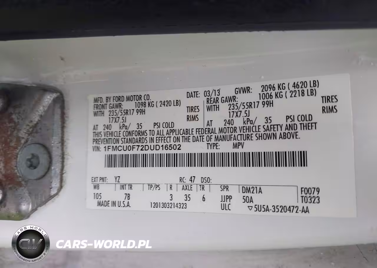 IAAI Nr: I-44532574 VIN: 1FMCU0F72DUD16502 Port: Indianapolis, IN
