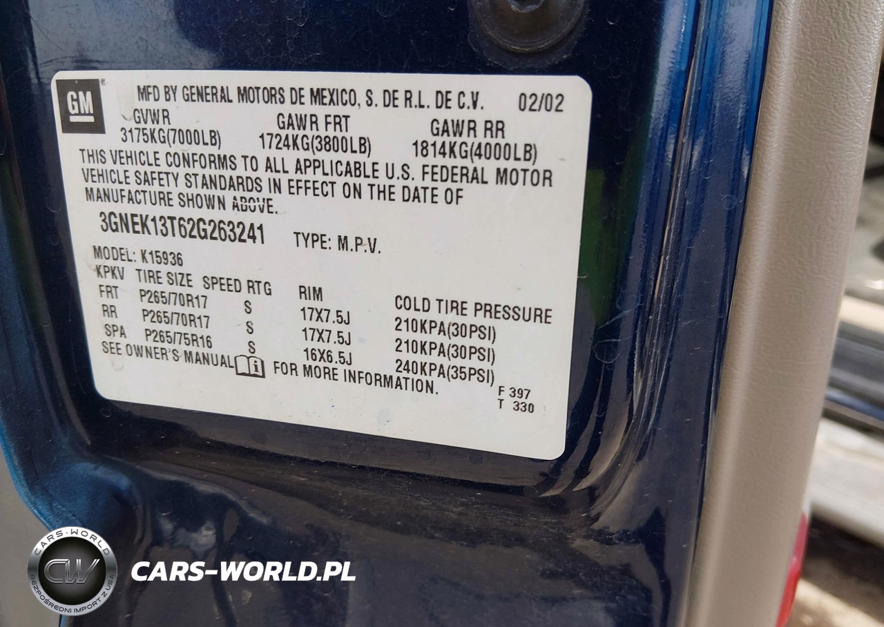 IAAI Nr: I-44532874 VIN: 3GNEK13T62G263241 Port: Houston, TX