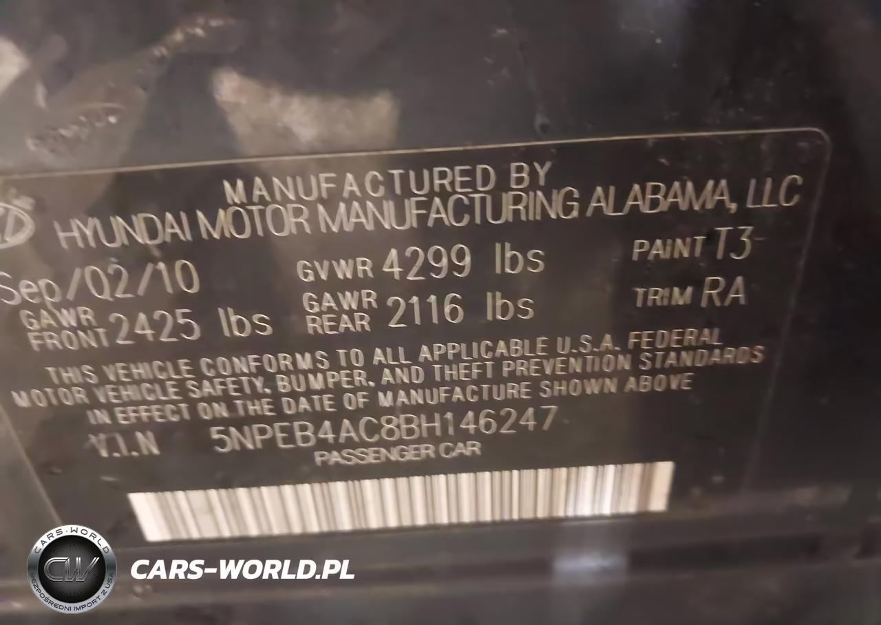 IAAI Nr: I-44535873 VIN: 5NPEB4AC8BH146247 Port: Indianapolis, IN