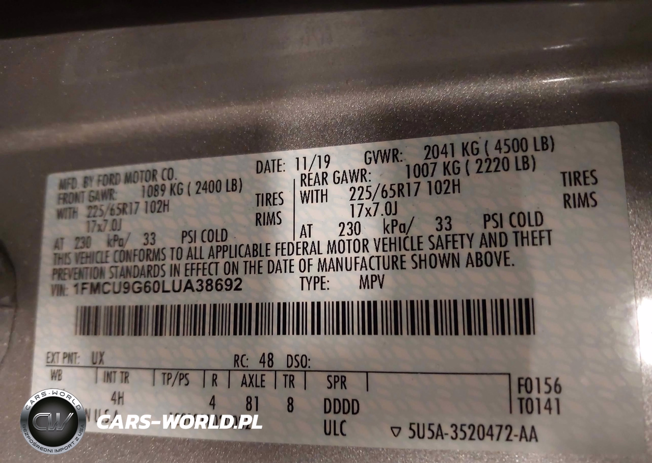 IAAI Nr: I-44536226 VIN: 1FMCU9G60LUA38692 Port: Indianapolis, IN