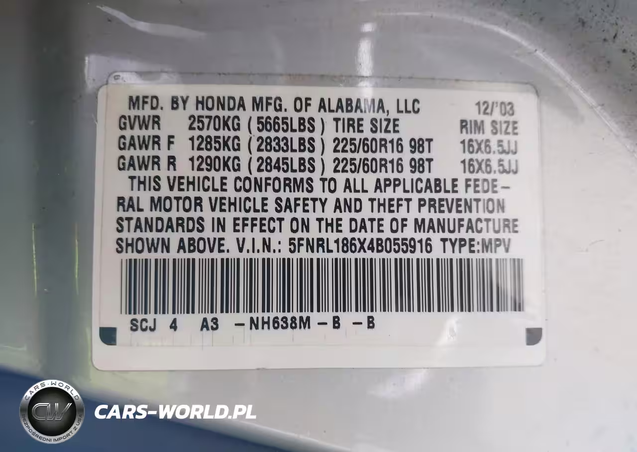 IAAI Nr: I-44536951 VIN: 5FNRL186X4B055916 Port: Elizabeth, NJ