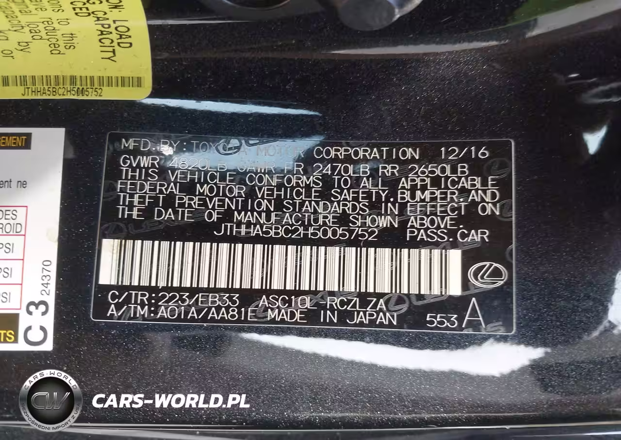 IAAI Nr: I-44537346 VIN: JTHHA5BC2H5005752 Port: Savannah, GA