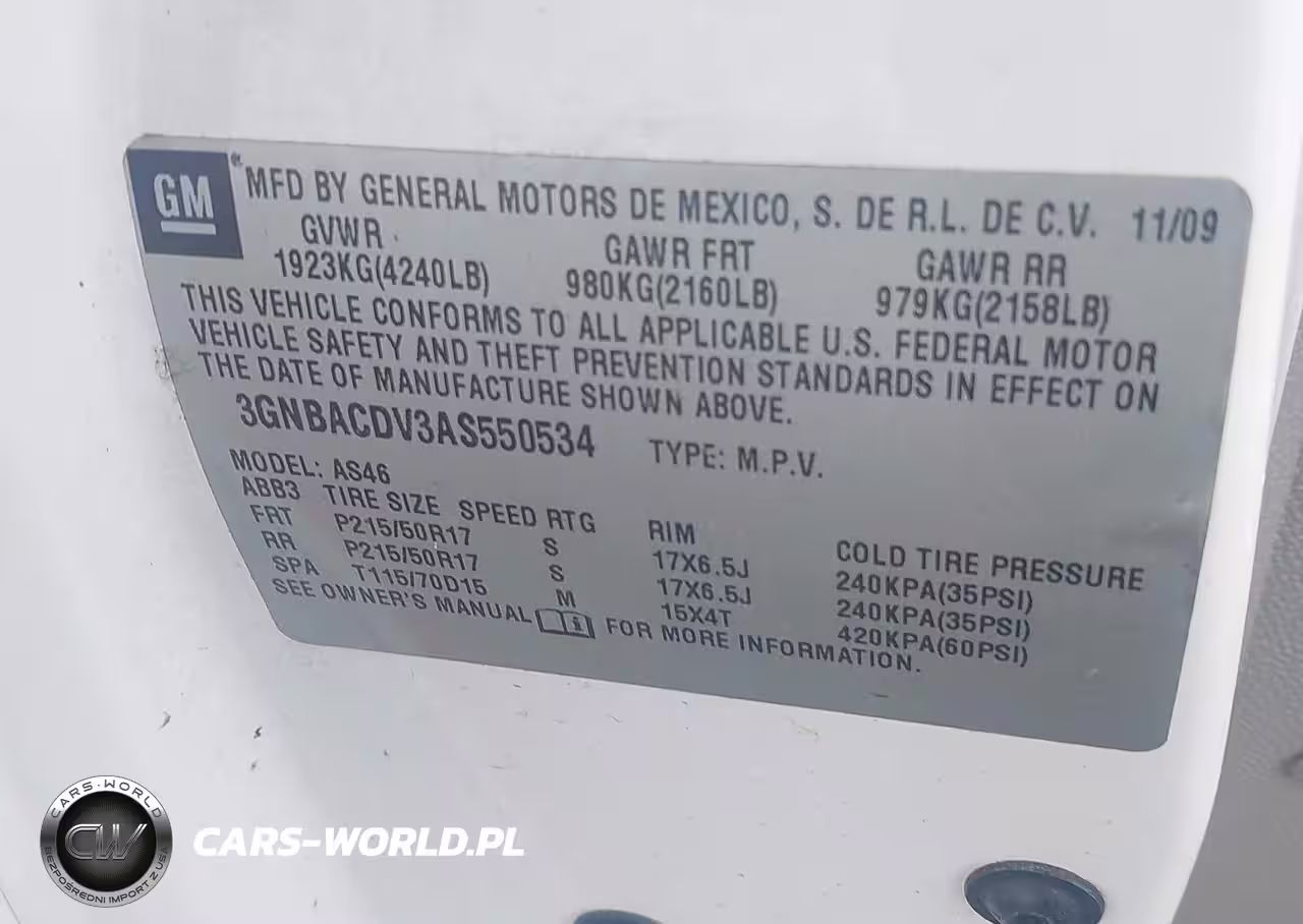 IAAI Nr: I-44537726 VIN: 3GNBACDV3AS550534 Port: Elizabeth, NJ