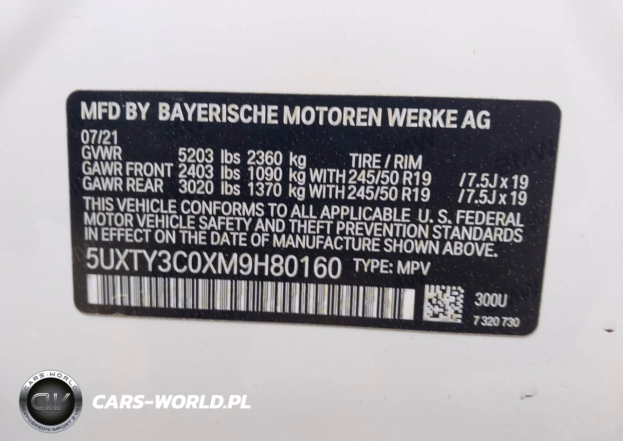 IAAI Nr: I-44538419 VIN: 5UXTY3C0XM9H80160 Port: Savannah, GA
