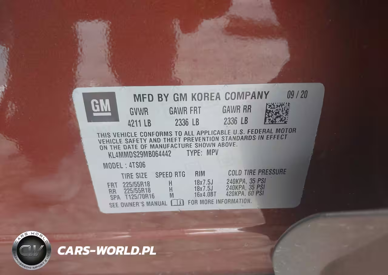 IAAI Nr: I-44538677 VIN: KL4MMDS29MB064442 Port: Savannah, GA
