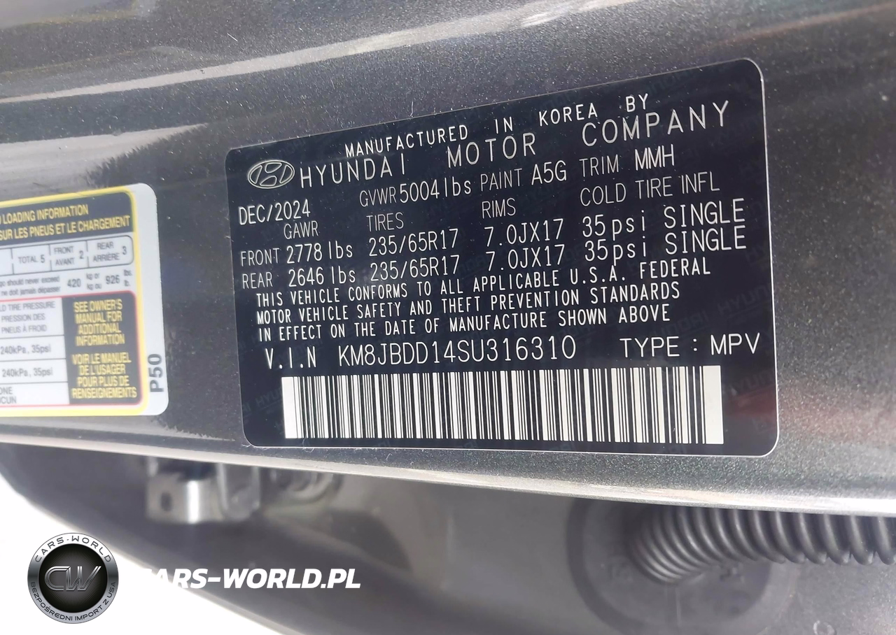IAAI Nr: I-44539220 VIN: KM8JBDD14SU316310 Port: Elizabeth, NJ