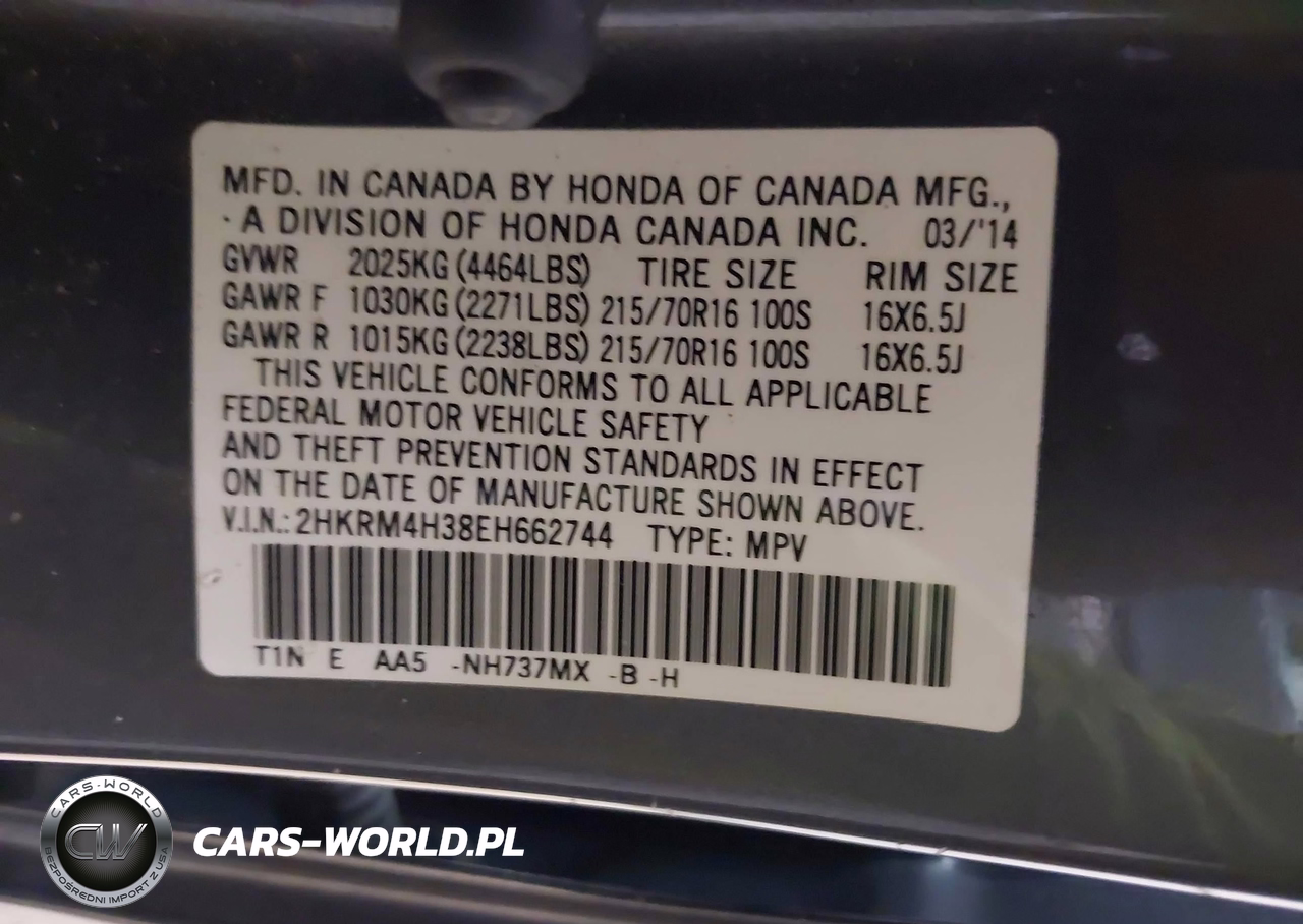 IAAI Nr: I-44539484 VIN: 2HKRM4H38EH662744 Port: Indianapolis, IN