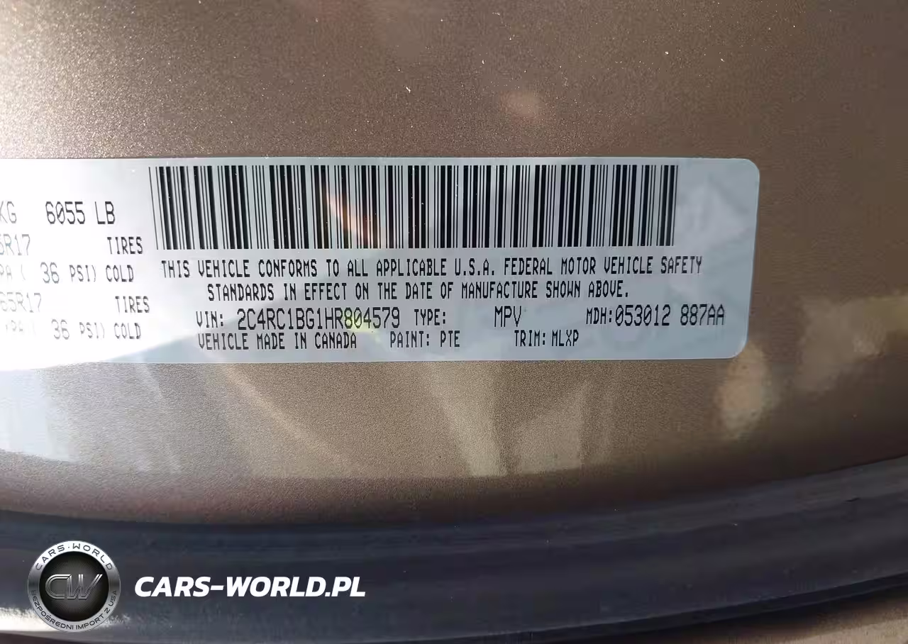IAAI Nr: I-44541134 VIN: 2C4RC1BG1HR804579 Port: Elizabeth, NJ