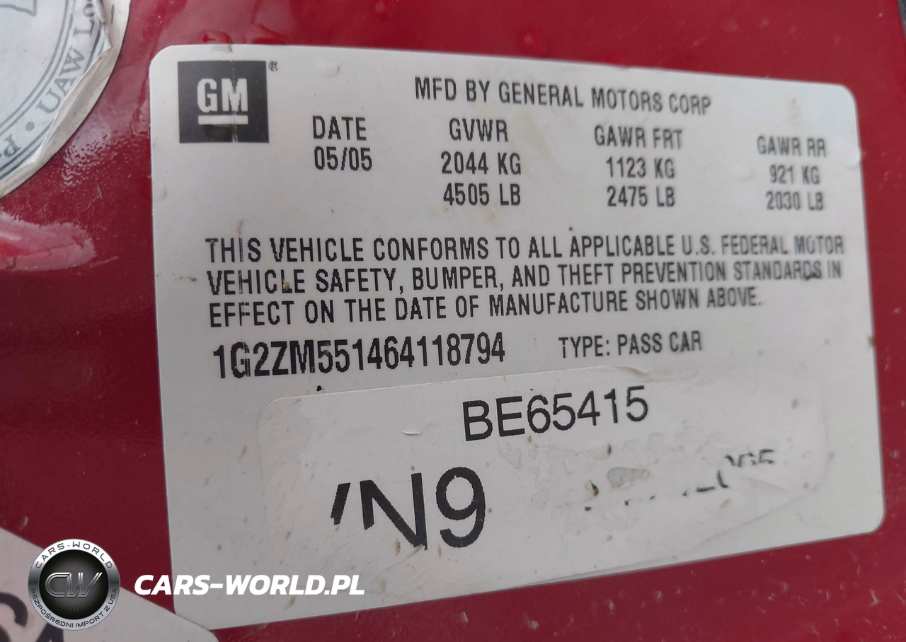 IAAI Nr: I-44541465 VIN: 1G2ZM551464118794 Port: Los Angeles, CA