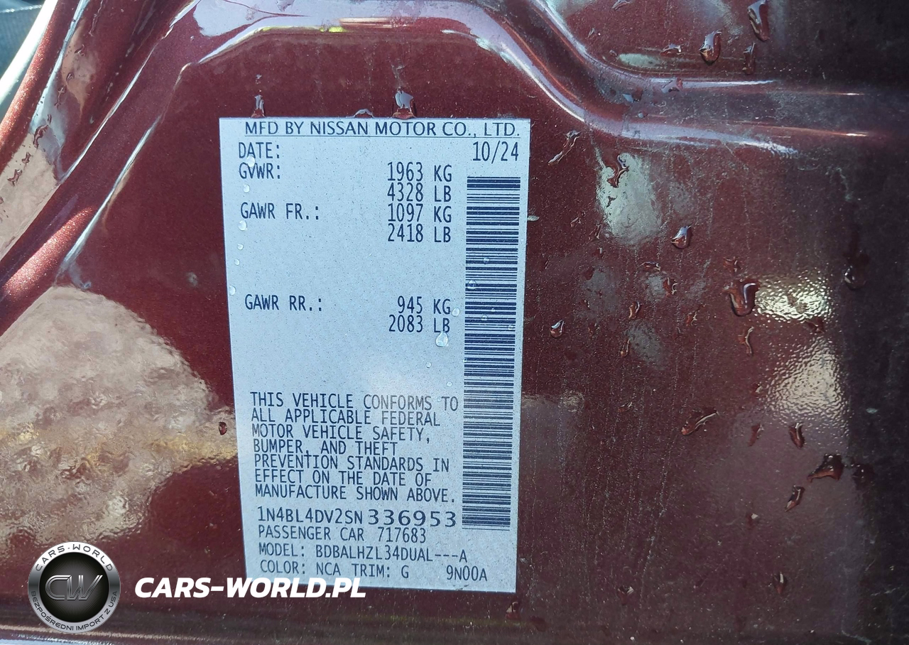IAAI Nr: I-44541699 VIN: 1N4BL4DV2SN336953 Port: Savannah, GA