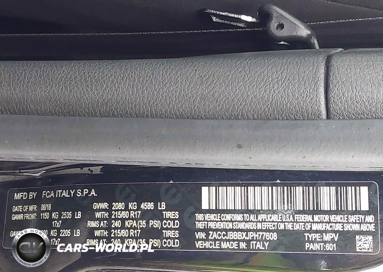 IAAI Nr: I-44543509 VIN: ZACCJBBBXJPH77608 Port: Houston, TX