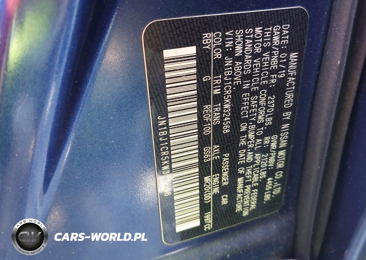IAAI Nr: I-44545352 VIN: JN1BJ1CR5KW324568 Port: Savannah, GA