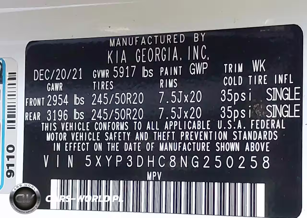 IAAI Nr: I-44546320 VIN: 5XYP3DHC8NG250258 Port: Los Angeles, CA