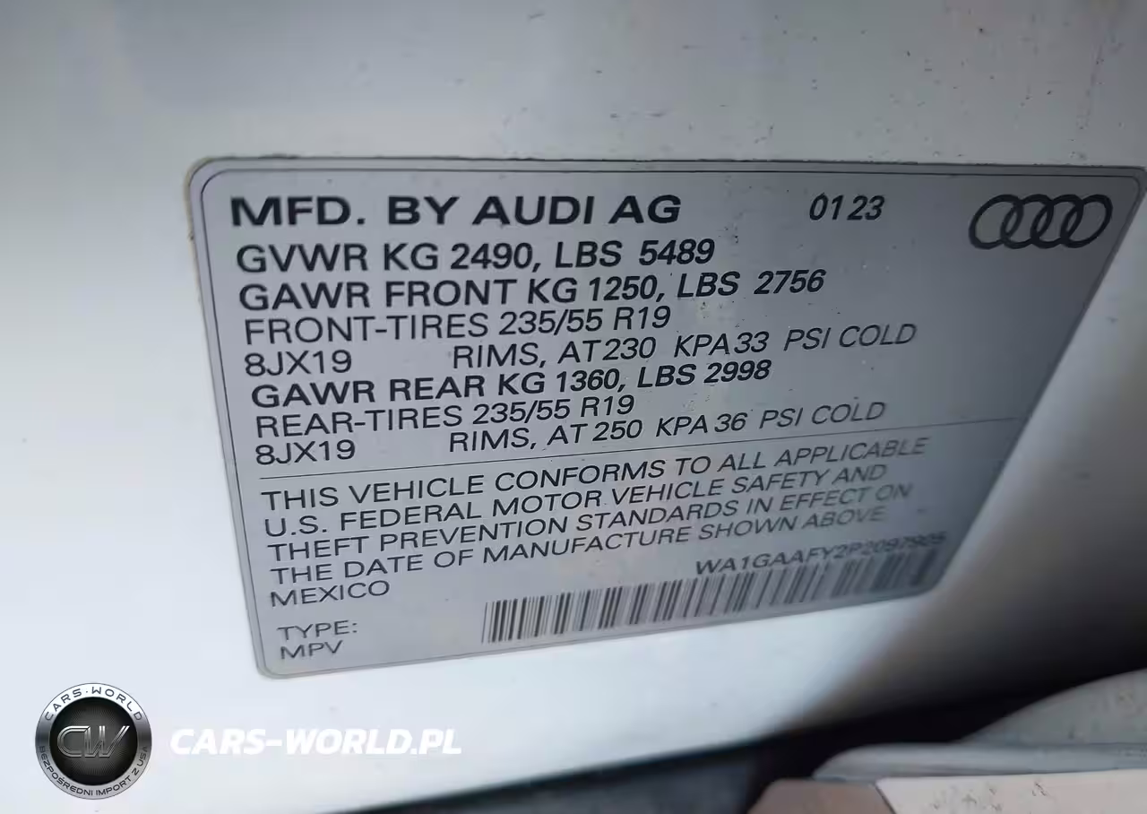 IAAI Nr: I-44546646 VIN: WA1GAAFY2P2097905 Port: Elizabeth, NJ