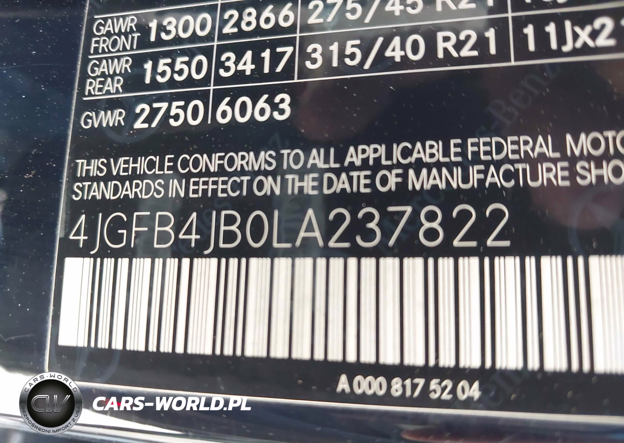 IAAI Nr: I-44546680 VIN: 4JGFB4JB0LA237822 Port: Houston, TX