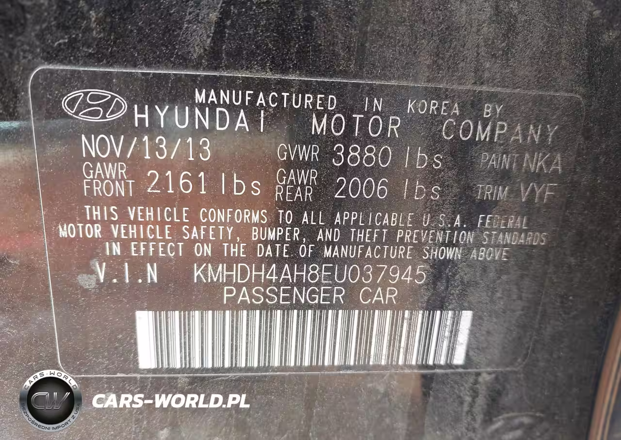 IAAI Nr: I-44547357 VIN: KMHDH4AH8EU037945 Port: Savannah, GA
