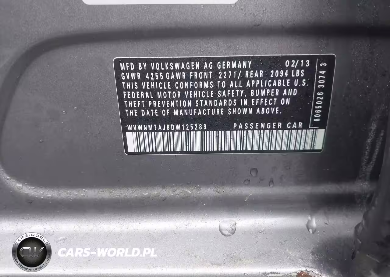 IAAI Nr: I-44547992 VIN: WVWNM7AJ8DW125289 Port: Elizabeth, NJ