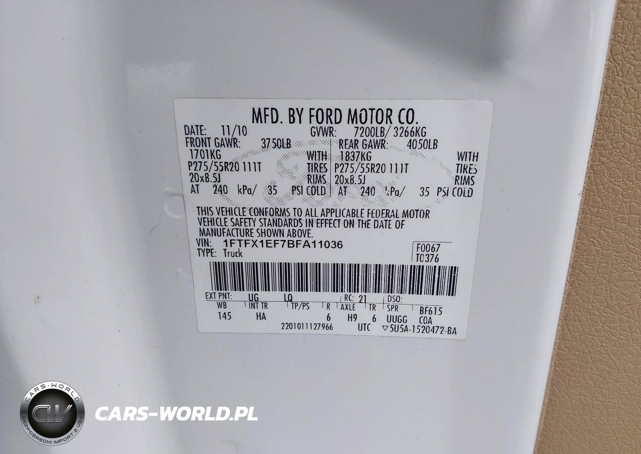 IAAI Nr: I-44548333 VIN: 1FTFX1EF7BFA11036 Port: Savannah, GA