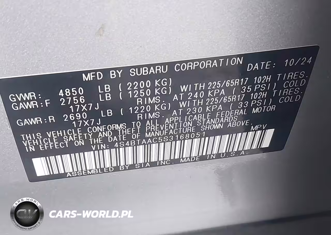 IAAI Nr: I-44549536 VIN: 4S4BTAAC5S3168051 Port: Elizabeth, NJ