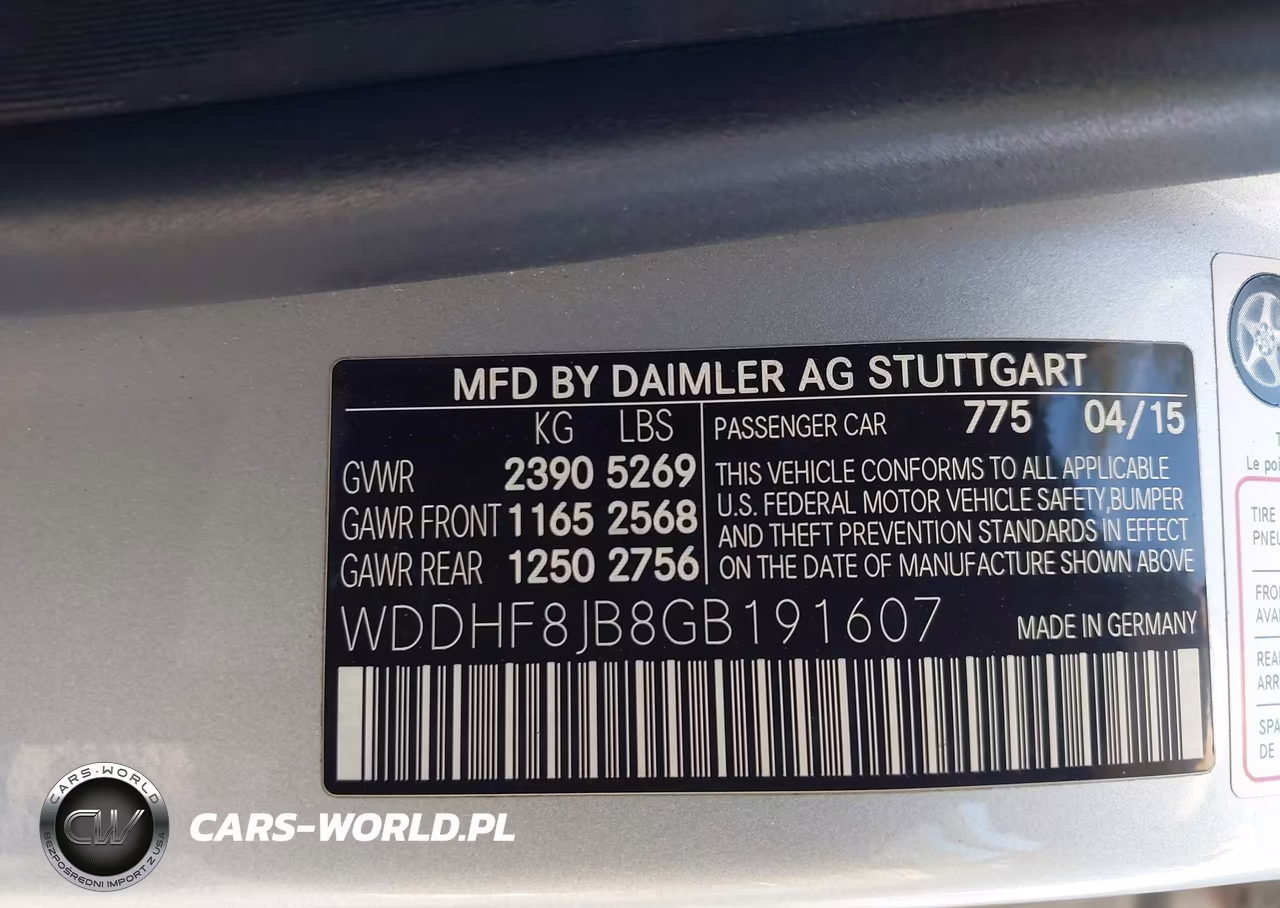 IAAI Nr: I-44549580 VIN: WDDHF8JB8GB191607 Port: Elizabeth, NJ