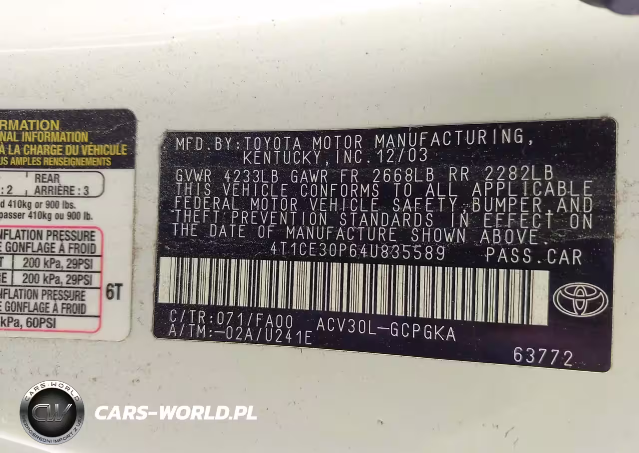 IAAI Nr: I-44549869 VIN: 4T1CE30P64U835589 Port: Los Angeles, CA