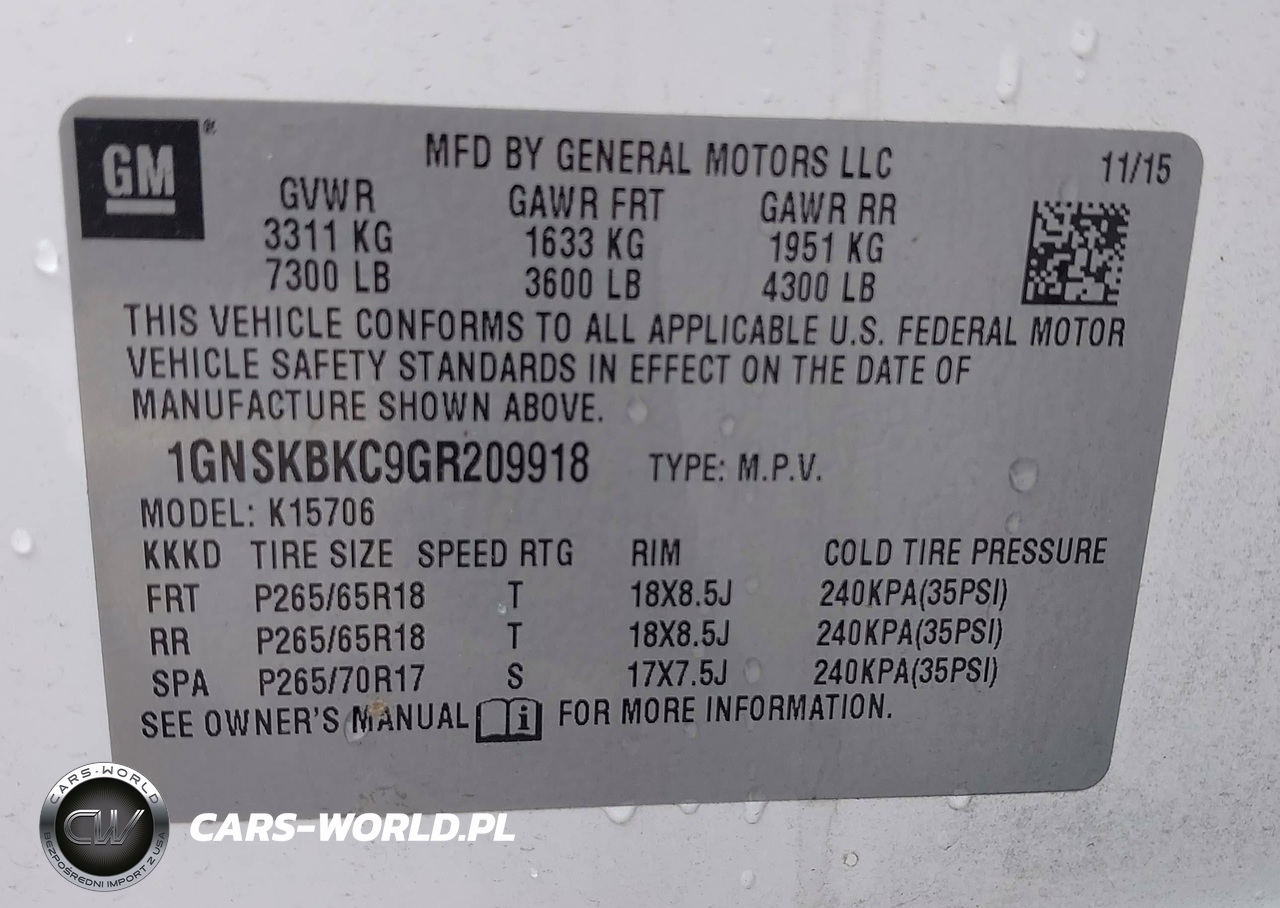 IAAI Nr: I-44550310 VIN: 1GNSKBKC9GR209918 Port: Los Angeles, CA