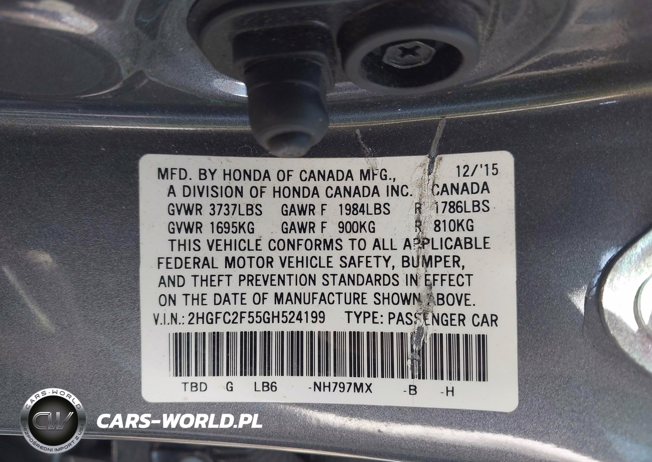 IAAI Nr: I-44550370 VIN: 2HGFC2F55GH524199 Port: Elizabeth, NJ
