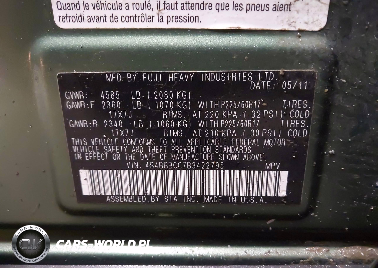 IAAI Nr: I-44550837 VIN: 4S4BRBCC7B3422795 Port: Elizabeth, NJ