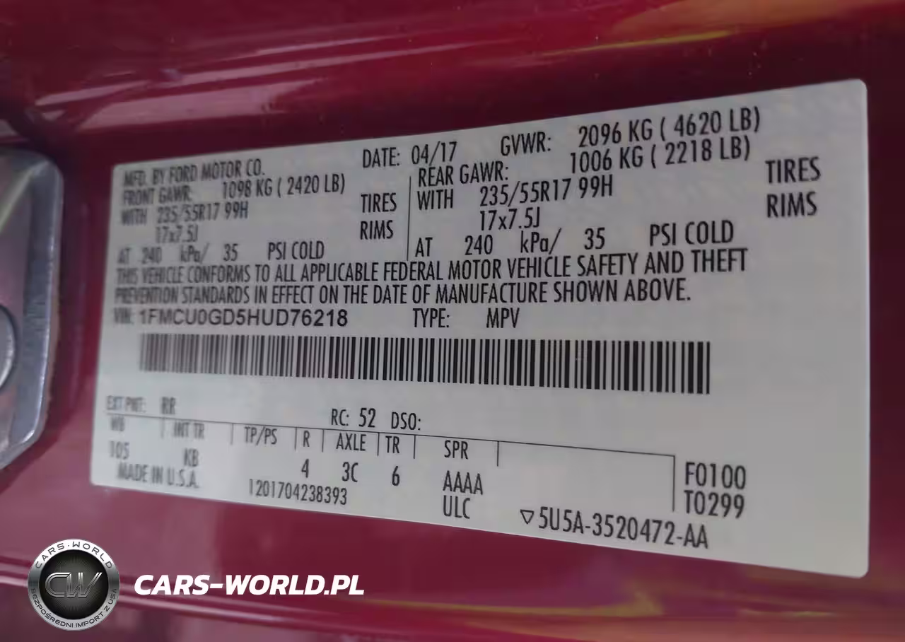 IAAI Nr: I-44553104 VIN: 1FMCU0GD5HUD76218 Port: Houston, TX
