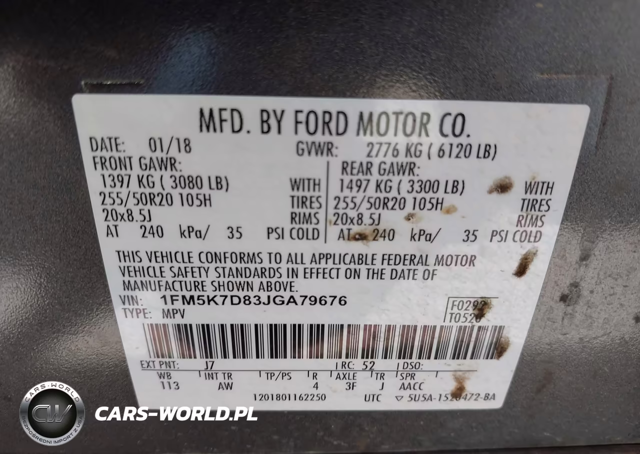 IAAI Nr: I-44554384 VIN: 1FM5K7D83JGA79676 Port: Houston, TX