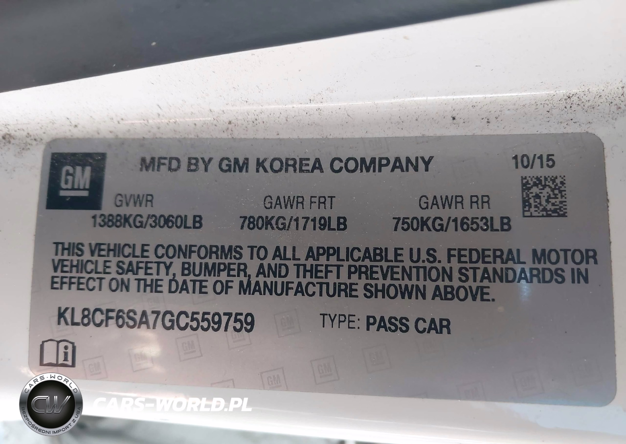 IAAI Nr: I-44554467 VIN: KL8CF6SA7GC559759 Port: Indianapolis, IN