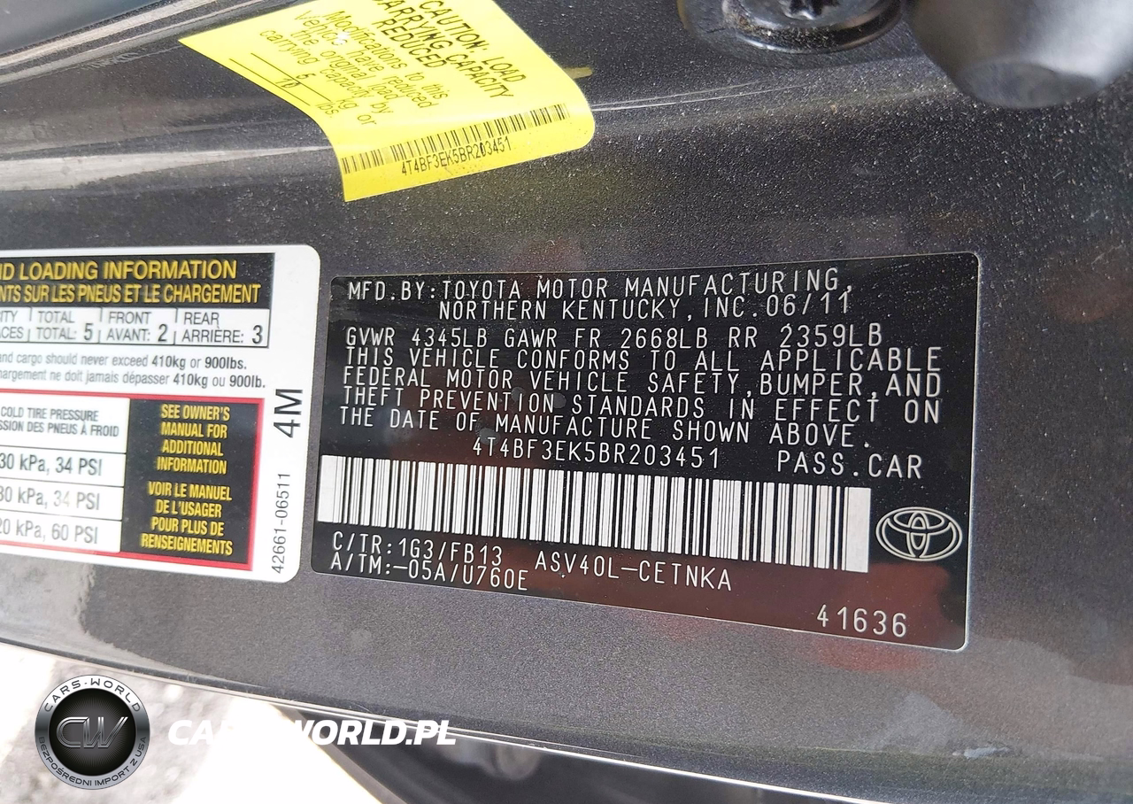 IAAI Nr: I-44555301 VIN: 4T4BF3EK5BR203451 Port: Indianapolis, IN