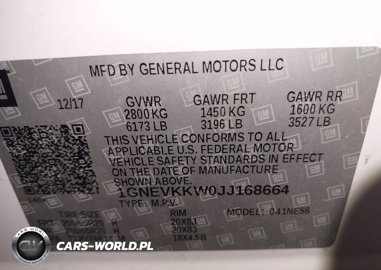 IAAI Nr: I-44555317 VIN: 1GNEVKKW0JJ168664 Port: Indianapolis, IN