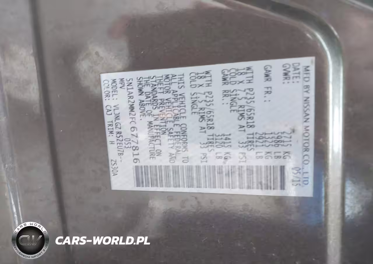 IAAI Nr: I-44555468 VIN: 5N1AR2MM2FC677816 Port: Indianapolis, IN