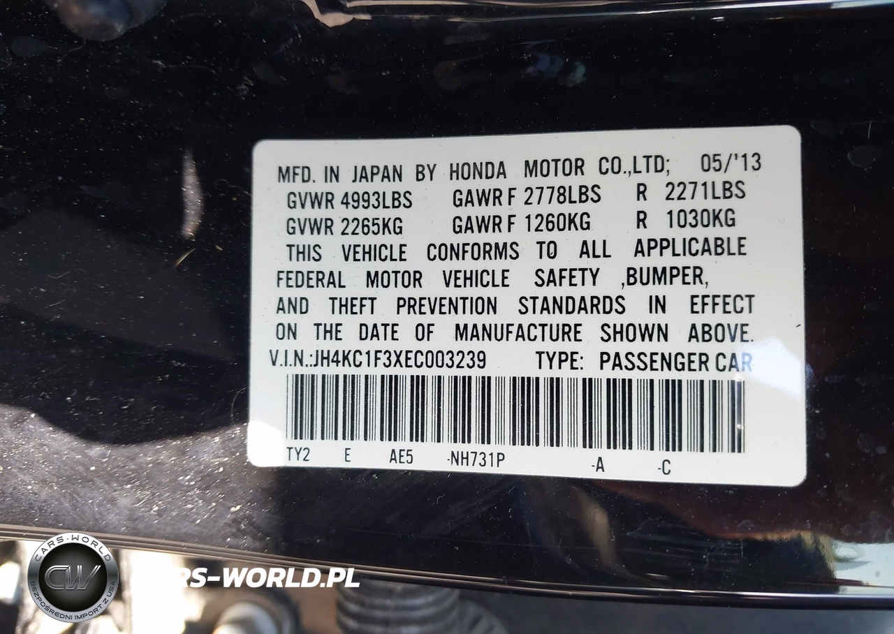 IAAI Nr: I-44555742 VIN: JH4KC1F3XEC003239 Port: Savannah, GA